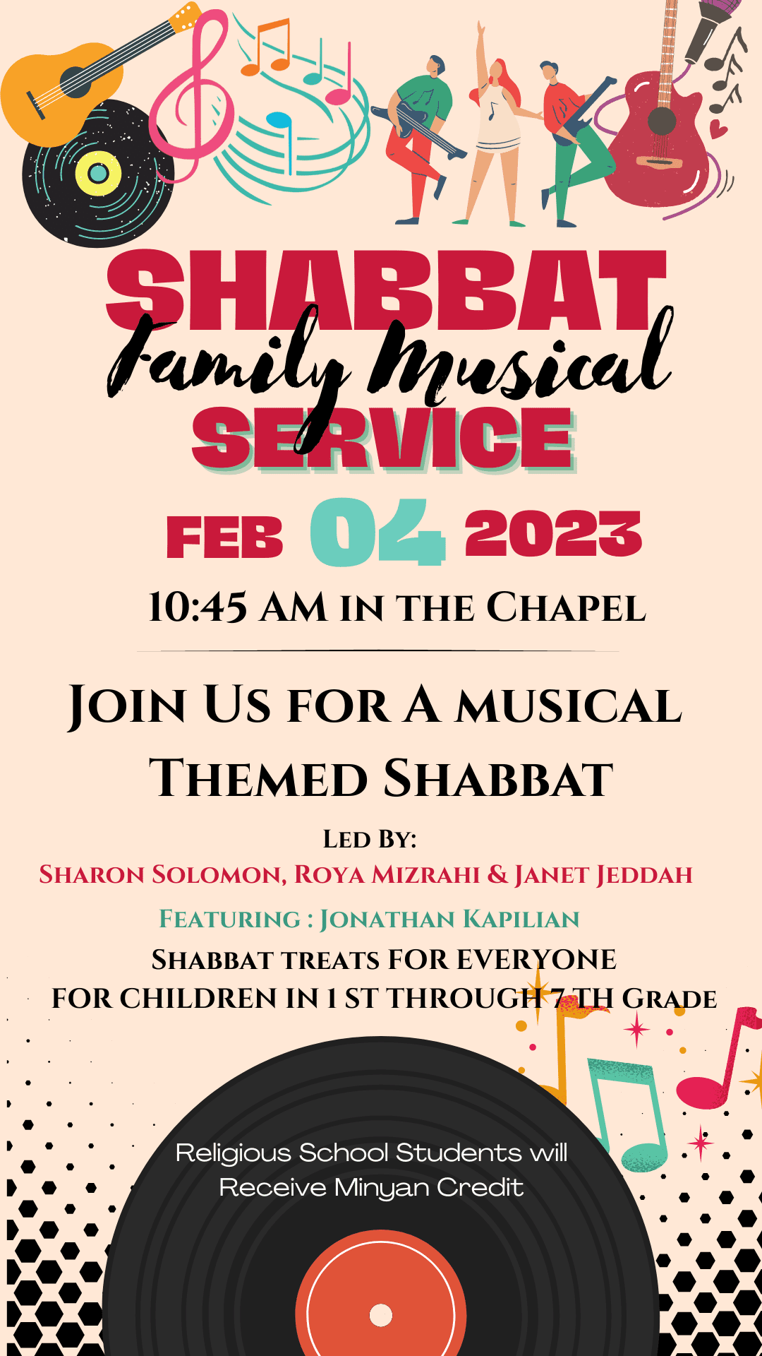 Join us for a musical themed Shabbat led by Sharon Solomon, Roya Mizrahi & Janet Jeddah, featuring Jonathan Kapilian.